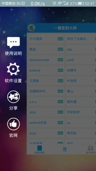 4、智能的多账号管理,每个账号可签到贴吧无限制,添加账号无限制,一键签多账号。