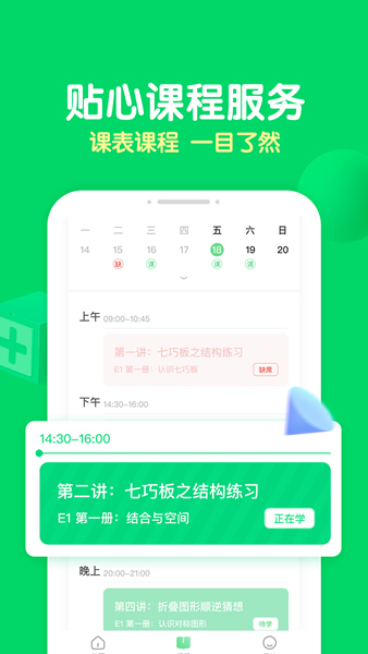 展示孩子的历史上课记录和即将要上的课程,上课信息一目了然;通过添加至日历,可实时获取上课提醒,确保孩子不错过每一节精彩讲解;一键点击进入教室,即可实现与老师的面对面在线互动。