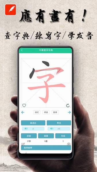 1、可以通过手机快速学习汉字,提供优质的中文学习工具应用。