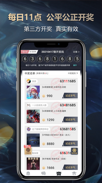 软件里还有各种实用的功能,比如游戏攻略、上分技巧和任务系统,能帮助玩家提升游戏水平。而且所有资源都可以免费领取,不用花流量下载,直接在线玩就能享受优质的游戏体验。最棒的是,每天都有新的活动,11点准时开奖,奖品种类非常丰富,还支持邀请好友一起参与抽奖。