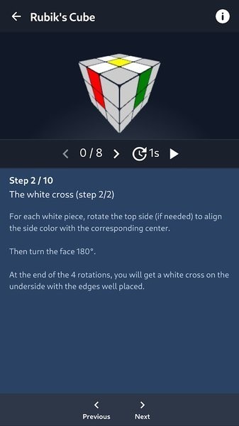 最让我喜欢的是它的教程部分,里面有详细的教学视频和步骤分解,特别适合新手学习。我还用了它来练习还原魔方的速度,发现真的有进步!软件还会记录每次完成的时间,可以和其他人比拼,挺有成就感的。
