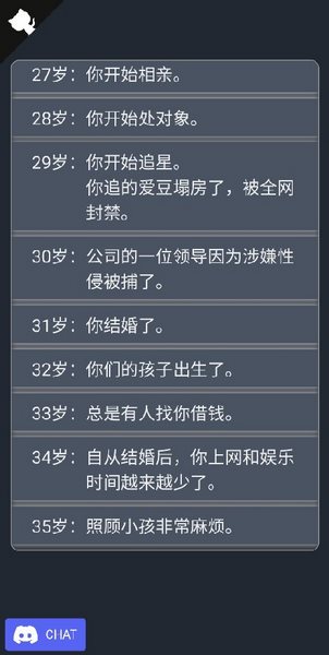 人生模拟器是一款超级简单的游戏,玩起来特别有意思。每次事件中你只需要选一个选项,就能决定自己人生的走向。游戏里的选择很多,涵盖人生的各个阶段,而且每次选择都会影响后续的选项,再加上随机机制,每次玩都会有不同的乐趣。画面很简单,只有文字构成,随时都能打开玩,方便极了。