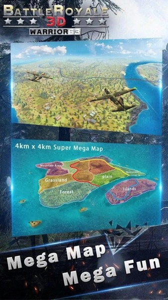 4公里×4公里的广阔地图,海洋、陆地、山脉、草丛、工厂;丰富的地图元素,让你充分体验关门打狗、飞车抢人头、荒野跑毒的乐趣。