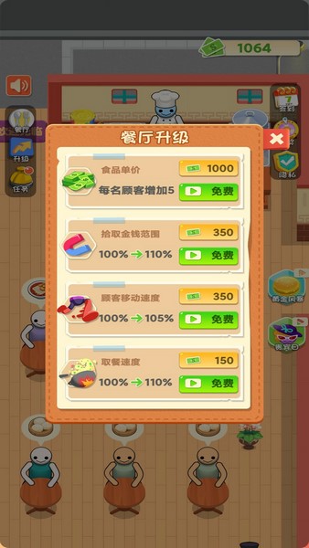 梦幻美食城是一款餐厅经营类游戏,其中的菜品是非常丰盛的,随着经营我们可以慢慢解锁很多菜单。另外我们也可以将餐厅进行升级,使其能够开放更多的功能,比如开放更多的座位、升级厨房等等,提升餐厅的整体收益。此外玩家还需要控制角色将做好的菜端到顾客的面前,有些VIP客户还需要特别的照顾。