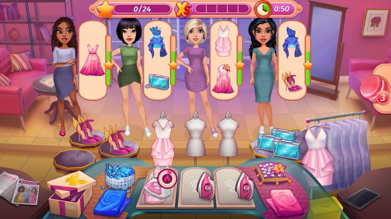 服装热时装秀是一款非常趣味的冲浪模拟手游,游戏采用卡通画风绘制,在这里玩家经营着一家刚开业的服装店,你需要满足客人们的要求,做出让他们满意的服装来,这样你就能够赚到收益,然后你就能够使用这些赚到的钱来升级自己的店铺,解锁更多的优质的材料让你能够做出更多的好衣服。