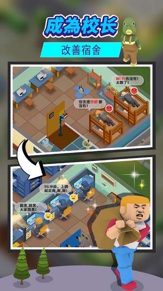 Idle School Tycoon是一款休闲模拟经营类手游,而该版则是无限金币钻石版本,可以让玩家无条件获取无限金币钻石,轻松购买各种道具,畅玩更过瘾!同时游戏采用卡通画风绘制,总体诙谐搞笑,且玩法丰富趣味,在这里玩家将成为一名校长,为了让学校发展起来,需要不断建设各种学习设施,并邀请专业教师进行授课,吸引更多学生加入学校,同时更需要不断抹除学校内的脏乱差,并修缮学校每个角落,乐趣无限!
