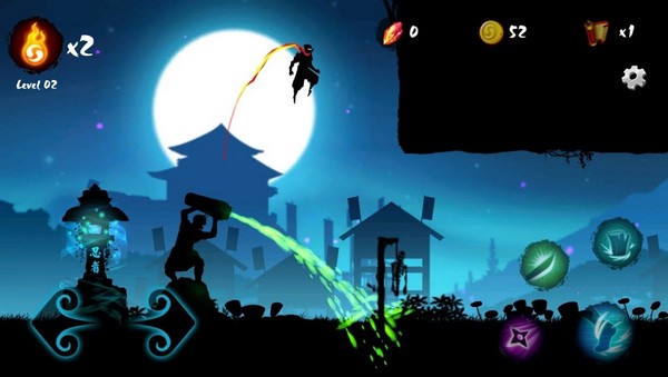 游戏中有大量的忍者角色供你解锁,用攻击、飞镖、跳跃、变形帮助你冒险;