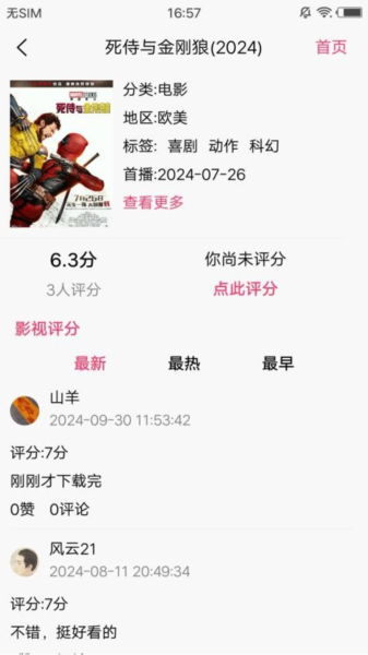 4、影视评论: 用户可以在线查看最新的、最热的和最早的影评,了解他人的观看体验。