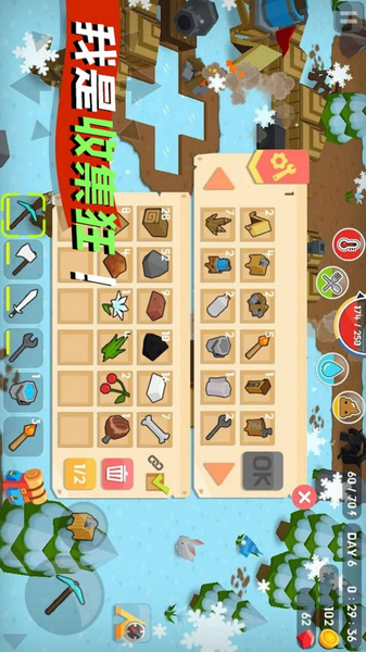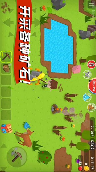 在地图中你看到的道具都可以拾取,通过收集木头、矿石用来制造工具,狩猎动物,补充能量!一定不要离水源太远,要及时补充水哦!黑天后危险重重,要尽快返回营地,或者使用营火,用来驱赶野兽!