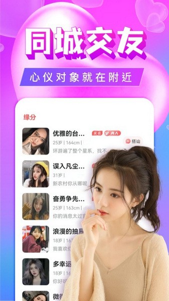 【同城交友】同城陌生好友探寻,3秒速配,5秒相识,自由选择线上高颜值妹子,线上交友聊天,默默探寻有趣的灵魂伴侣,高颜值小姐姐随时随地和Ta邂逅聊天。
