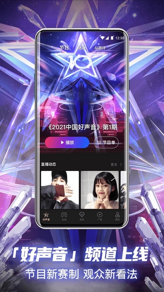 ·国内知名综艺节目《中国好声音》的官方app,软件可以让每个人都能参加好声音的海选,只要你对自己的歌声有足够的信心就可以通过软件来报名参加