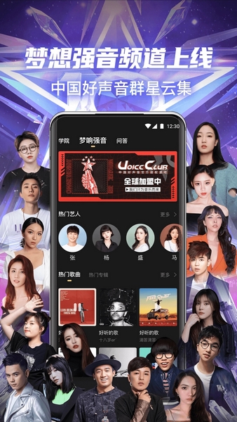 ·可以参加好声音网络招募,百万学员同场互动的音乐娱乐软件,学员通过歌房同台竞技,接受好声音导演、音乐指导和明星学员的考核,决出优胜学员