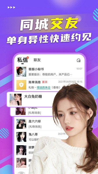 【同城相会】系统智能匹配附近同城好友,随时随地和异性聊天。线上交友聊天,线下见面约会!