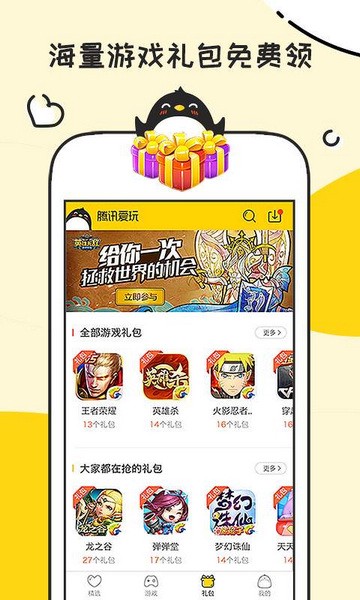 腾讯爱玩礼包中心海量独家礼包免费领取;