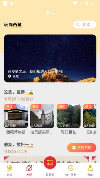 3、可以在发现的专区之中将自己在西藏旅游发生的点点滴滴进行分享记录,保存美好。