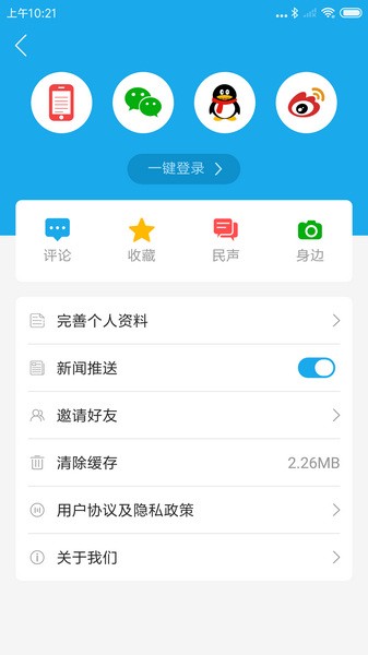 2、进入我的界面,点击【一键登录】