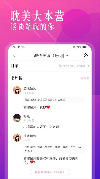 界面设计也很棒,字体大小、背景颜色都能自己调,晚上看书眼睛也不累。最让我开心的是可以离线阅读,平时坐地铁或者排队的时候都能看小说,完全不耽误时间。社区专栏也很有趣,认识了好多志同道合的朋友,大家一起讨论剧情,氛围特别好。