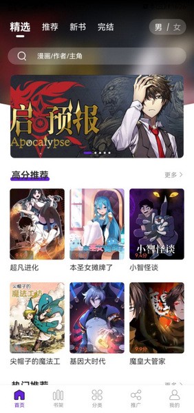 1.个性化分类,智能搜索分类就涵盖了3种主题,选择和作者,个性化建议满足漫画迷的挑剔口味;独特的智能搜索引擎和大量的关键字搜索指南将不再使您容易触手可及的好漫画!