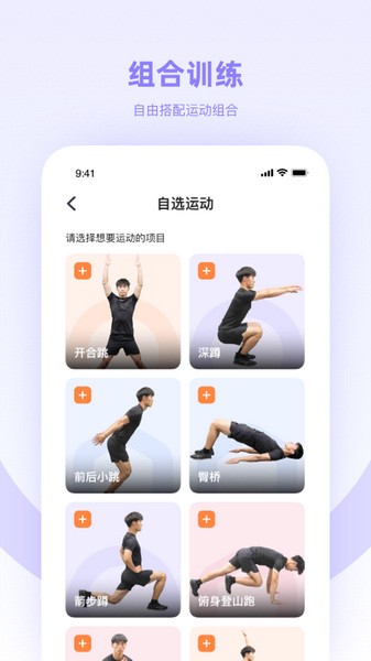 根据用户场景、健身目的、有无器械编排各种训练计划,4分钟也可以完成一次健身训练