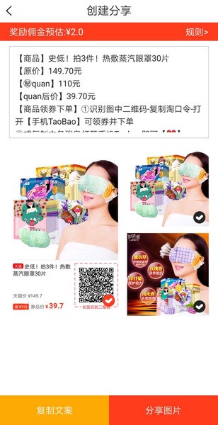 1、将实惠商品分享给朋友,对方下单可获得现金奖励