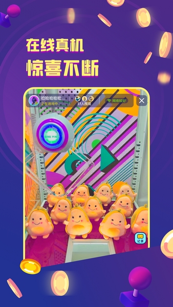 金币嘉年华是一款主打在线夹娃娃的软件,若是喜欢玩夹娃娃机,但是又不想专门出一趟门的话,那么不如使用这款软件远程夹娃娃吧!其汇集了相当丰富的娃娃机类型,各种Q萌可爱的玩偶、手办等你来夹,且更有推金币机可供游玩乐趣无限!