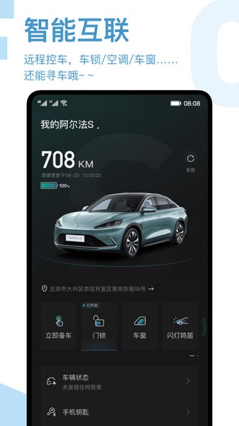 4、车辆控制:ARCFOX极狐远程控制车辆充电和空调以及车门锁;