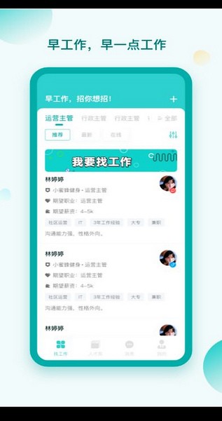 早工作-早一点找到工作,招你想招。 工资高、离家近、稳定、福利待遇好的工作应有尽有。 丰富的职位信息覆盖各个行业各个岗位,给求职者提供了更多的选择。