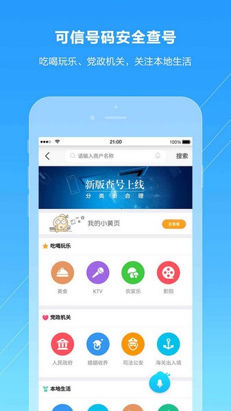 114号码百事通app是一款非常实用的生活服务软件,在软件内大家可以查询到很多的官方电话以及地址等,为大家提供了非常棒的手机生活服务指南。除此之外,软件内还包含了许多非常方便的生活服务。快递查询、家政服务等功能,涵盖了订房、订票、订餐等实用服务,以及信息查询、媒体阅读、优惠券下载等多类别,让大家足不出户就可以享受到各种快捷的服务,需要的朋友们快来下载吧!