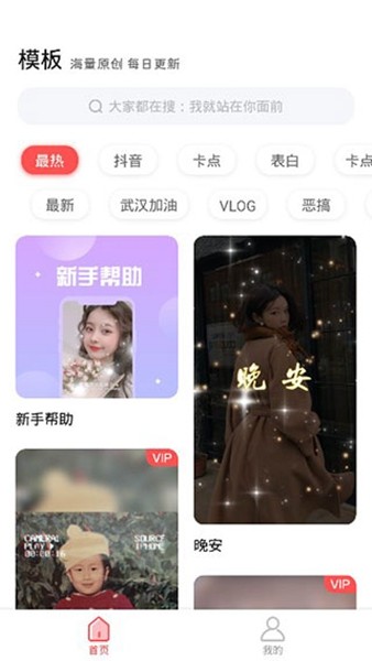 卡点视频、大片特效、实景广告、网红快闪、唯美融图、创意表白、趣味搞笑……海量视频模板任君选择。