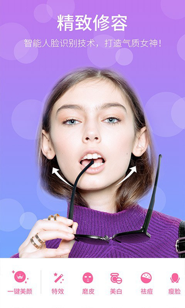 2.智能自动识别人脸五官,一键美颜修图,智能精致修容,操作很简单。