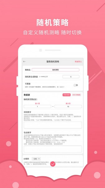 此外,该应用还具备高度定制化的随机策略功能,我可以轻松地为不同的场合设置相应的规则,无需在繁琐的配置中来回切换。随机整数和浮点数生成功能也非常强大,可以根据需求自由调整参数,确保每次生成的随机数都符合预期且互不干扰。它支持通过摇一摇手机或点击屏幕的方式生成随机数,还允许我设置是否在生成时伴随震动效果,这些细节设计极大地提升了使用的便捷性和趣味性。