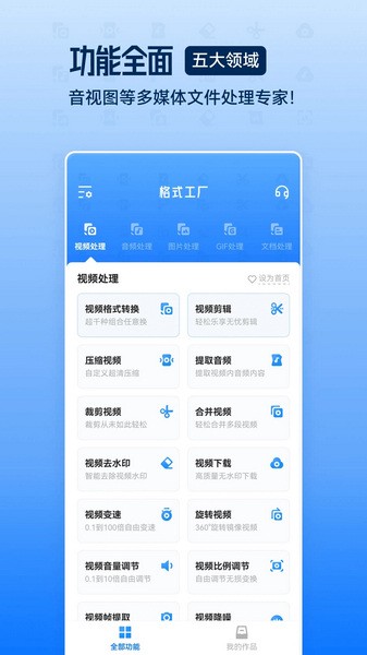 格式工厂手机版是一款功能非常强大的格式转换工具,只需要将文件添加进来就你能够给快速完成处理,软件同时支持包括视频、音频文件和Word、PDF等等,更囊括了多种不同的文件格式,从而更好的满足不同用户的格式转换需求。此外,格式工厂app中也具备了简单的编辑功能,清爽简洁的界面则更容易让大家上手体验,实用极了。