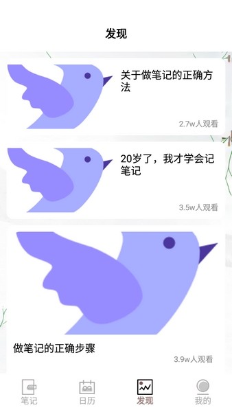 海鸟笔记是一款笔记软件,一打开就可以新建或者阅读自己写的笔记,操作非常方便,让用户可以随时打开手机进行记录。同时软件还提供了日历的功能,并且会显示农历,还有宜忌信息可以浏览,满足更多用户的需求。除了这些内容之外,我们还可以看到app中提供的关于笔记方面的技巧和资讯,让你学会正确的笔记记录方式。
