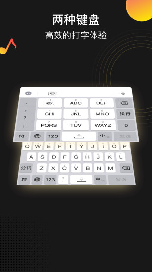 1、庞大的词库数据,智能联想输入,打字效率高。