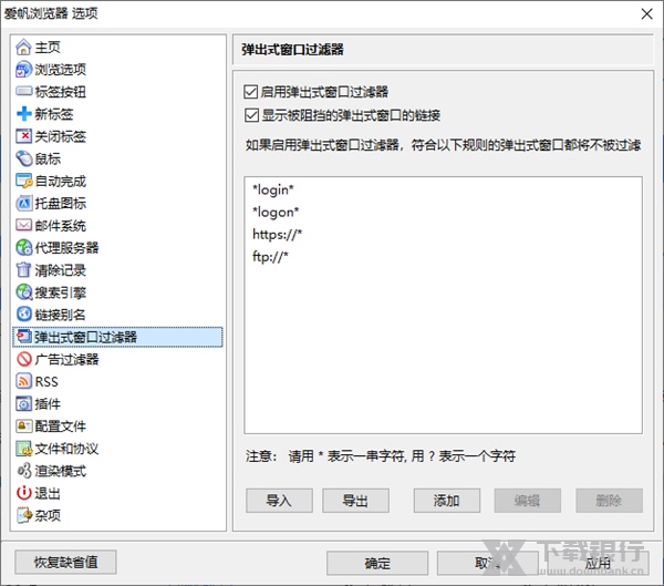 广告/弹出窗口通过过滤弹出窗口和屏蔽广告来清理网页内容。你可以用网页的右键菜单中的"添加到广告黑名单",把讨厌的无关内容加入到广告过滤器。