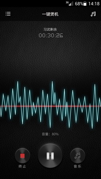 第四阶段:打擂阶段 24小时粉红噪音与音乐煲机(每半小时切换),播放粉红噪音波形动画与音乐波形动画,音量为12/16,四个阶段都可以手动暂停与终止,连续煲机2小时会自动进入休息阶段并保存煲机时间,阶段完成提示并回到开始煲机界面。