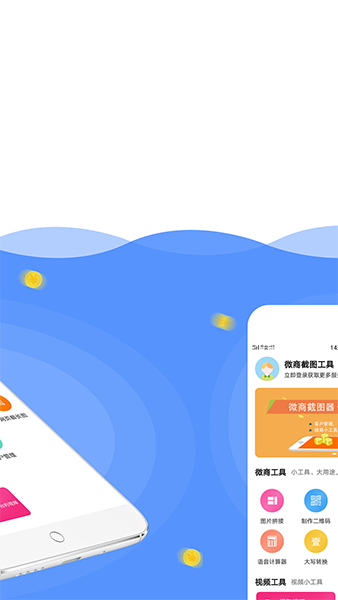 1、下载本站提供的微商截图器,进入首页后可以看到提供了截图工具、微商工具、视频工具等板块;