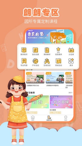 朗朗园所尊享定制服务,专属专学专用,我的课程我做主;公开课每周变换教学主题,与百万幼师实现深互动。