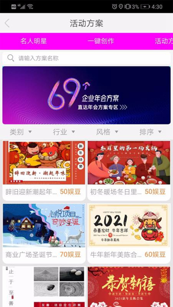 娱丝儿是一款专为活动、广告、公关打造的一款活动方案策划的软件,如果想要让自家的广告、节目更具影响力,除明星外,方案同样重要!而这款软件可以帮助用户能更好的串联现今所有娱乐圈明星资源及创意,以便定制绝佳创意!同时在创作过程中需要使用任何道具,都能在平台上进行采购,为你打造一站式处理方案!