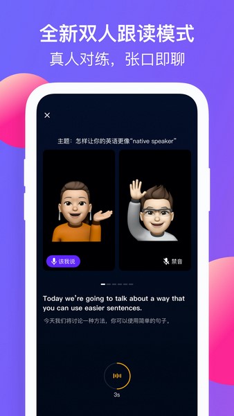 语料鲜活,发音纯正;跟随英语母语创作者在线感受全英文沉浸学习模式