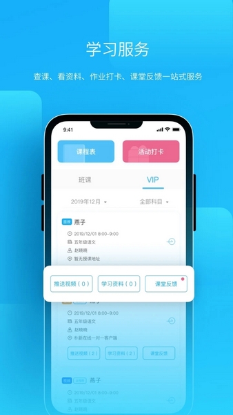 上课提醒:日历呈现课程时间、校区地点等重要信息,提醒孩子去上课。