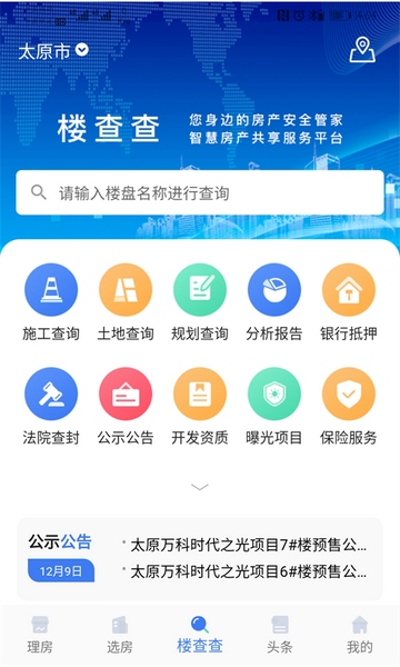 楼查查通过大数据方式,将全国权威部门发布的数据进行深刻挖掘整合,为全国用户提供真实透明的房产信息,通过友好界面的展示,帮助百姓鉴别房产项目是否手续齐全、房屋是否网签备案、有无银行抵押、法院查封等,真正做到了楼盘信息透明化、公开化。