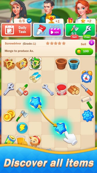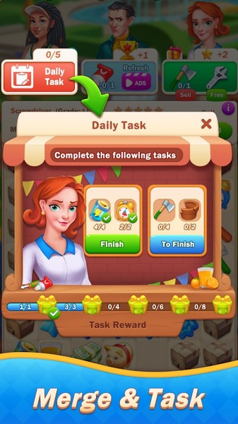 3、关注商店促销,兑换资源,合并提升道具等级,装饰庄园并解锁更多剧情玩法。