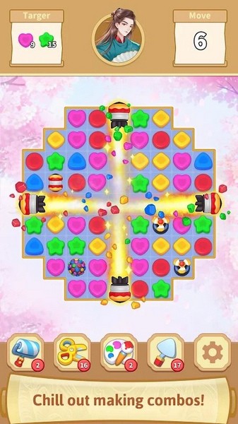 不过有时候在面对高难度关卡时可能会有点卡关,这时候就需要多观察和尝试不同的消除方式了。总体来说,这是一款非常值得一试的休闲游戏,如果你喜欢三消玩法的话,一定不要错过!