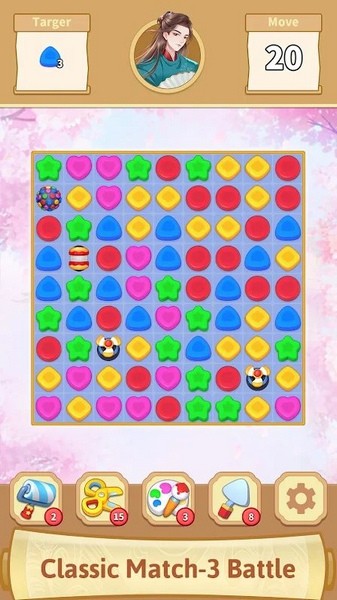 古代奇幻比赛是一款简单有趣的三消休闲游戏。在这款游戏中玩家可以通过点击屏幕来移动图案,使相同颜色的图案连接在一起,触发消除。不同数量的消除特效是不一样的,连续消除场面更加壮观。游戏内有许多精致的古装人物插画,玩家在达成特定关卡的通关后即可解锁获得插画,数量很多,需要慢慢收集。