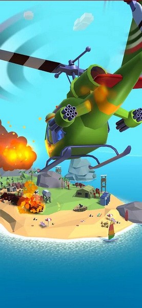 2、在直升机上使用重型武器来扫荡地面并摧毁所有目标,游戏很刺激,消灭更多目标。