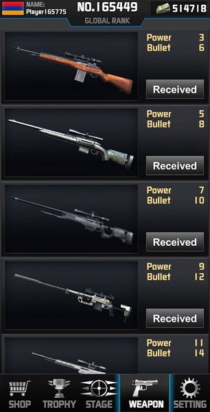 另外,可以自由切换角度观察目标,寻找最佳射击位置,这让我感觉自己像个真正的狙击手。消灭的目标越多,分数越高,兑换的物品也越多,在战斗中更有优势。