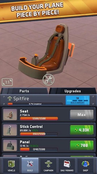 3、如果您成功地从放弃的空中王牌想法中赚钱,您将能够购买更高等级的部件并制造出更宏伟的飞机。