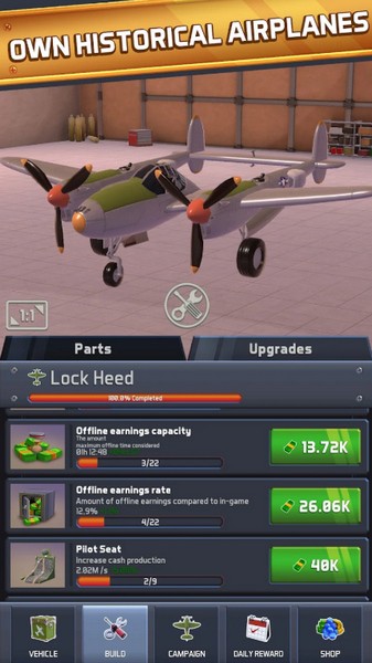 5、成为一个传奇的历史闲置飞艇飞机小队建设者与世界上最令人印象深刻的空军飞机收藏在你的空军机库!