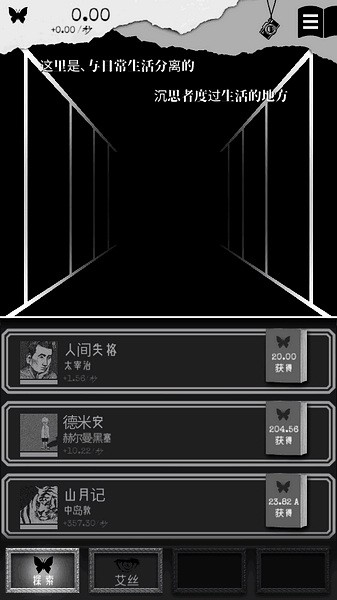 另我空间汉化版又叫另一个自我,是扑家工作室全新推出的一款能够引起大家思考的游戏。游戏的画风主要以暗黑低沉为主,以探寻自我,不迷失自己为主题,玩家们可以在游戏内看到非常多经典的作品,包括太宰治的人间失格,黑塞的德米安以及卡夫卡的变形记等等,增加游戏的时长,同时也让玩家们在游戏中可以仔细品味游戏的乐趣。